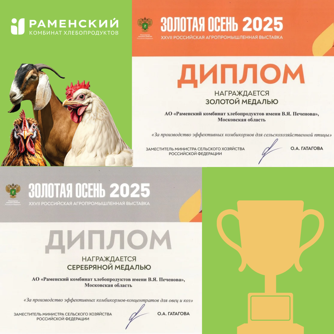 Высокоэффективный Раменский комбикорм ПК-5 СТАРТ для бройлеров стал победителем конкурса “Лучшие кормовые решения” на АГРОС-2025